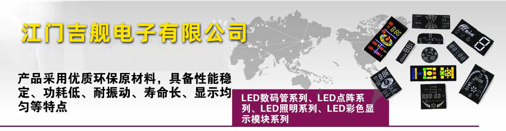 江門吉艦電子有限公司專業(yè)銷售LED數(shù)碼管、點陣 、彩屏等顯示器件、套件及LED照明電子元件。產(chǎn)品采用優(yōu)質(zhì)環(huán)保原材料,具備性能穩(wěn)定、功耗低、耐振動、壽命長、顯示均勻等特點。廣泛應(yīng)用于家用電器、LED顯示屏、電梯控制、儀器儀表等行業(yè)。江門吉艦電子有限公司憑借對光電行業(yè)豐富的系統(tǒng)經(jīng)驗,贏得了客戶的廣泛認(rèn)同和贊譽(yù),卓越的產(chǎn)品質(zhì)量、合理的價格深受客戶的好評。